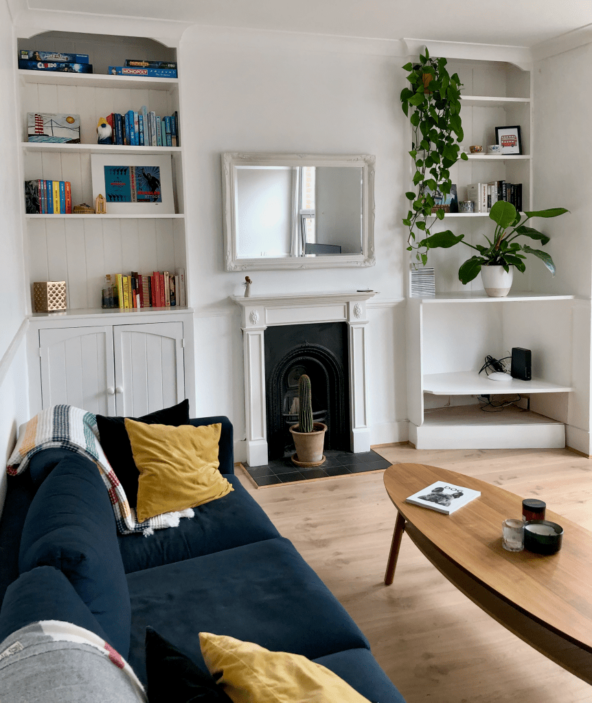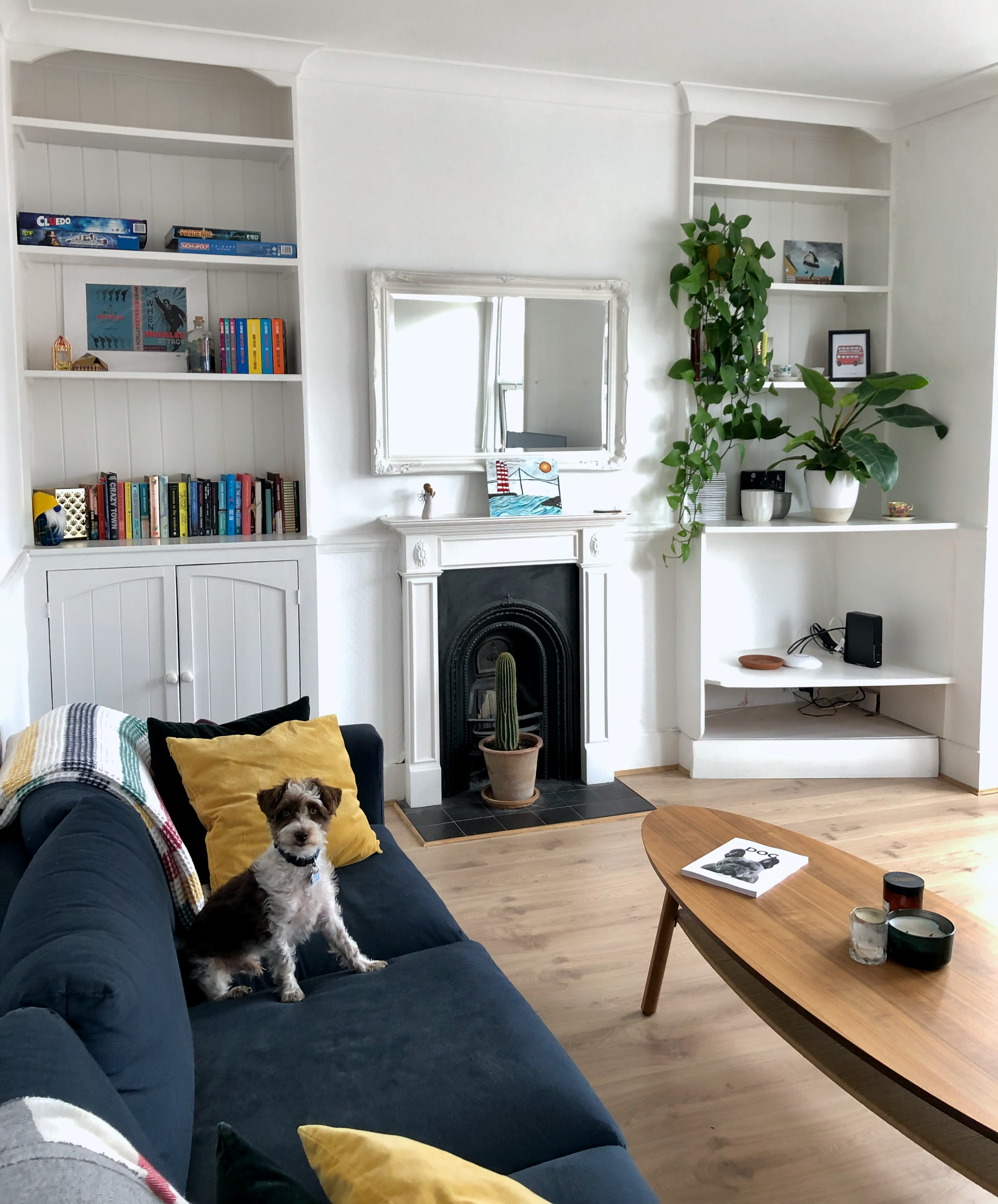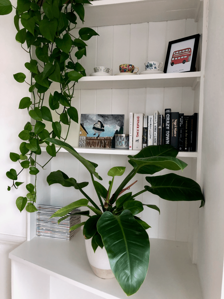 The bookshelves in our living room quickly became the storage center of bits and bobs we no longer knew what to do with. Flooding with under-watered plants, every book we’ve acquired since moving to London (including a few that were special enough to make the trek across the Atlantic with us) and J’s shrine to Harry Potter, our built-in shelves were in dire need of a little TLC.